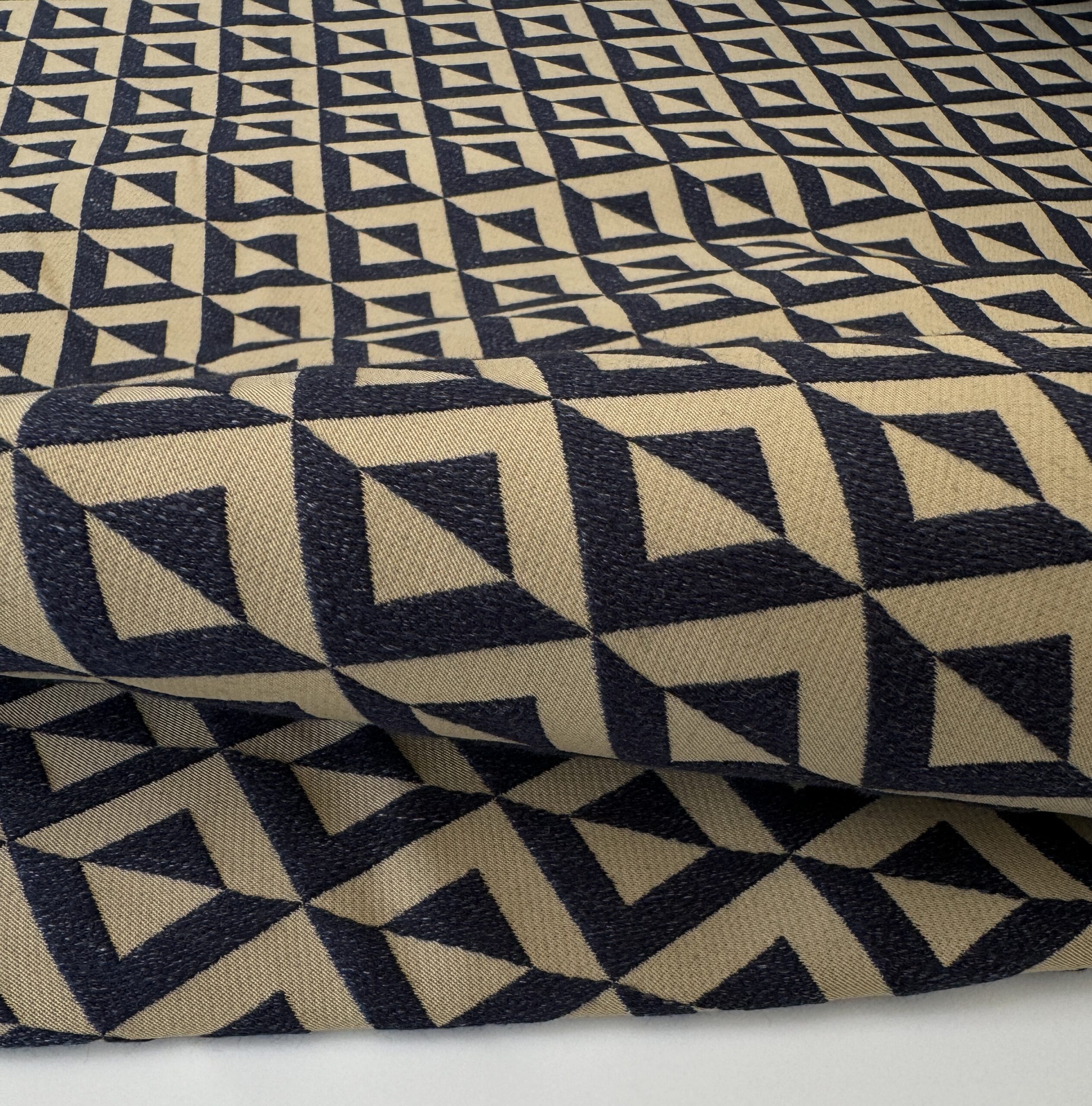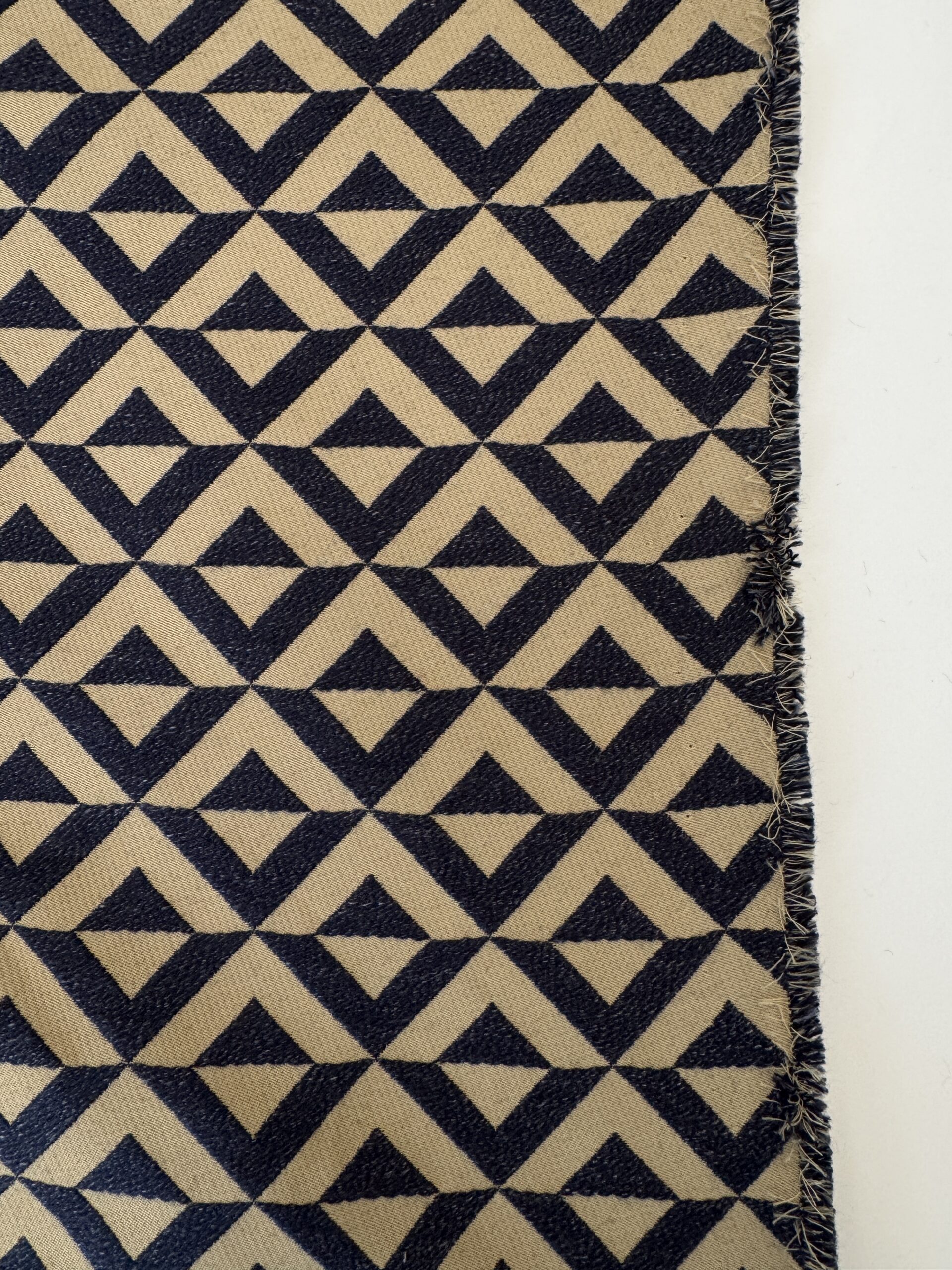 A medium to heavy-weight geometric cotton blend jacquard with a semi-structured texture, ideal for jackets, coats, skirts, bags, upholstery, soft furnishings, accessories, and more!