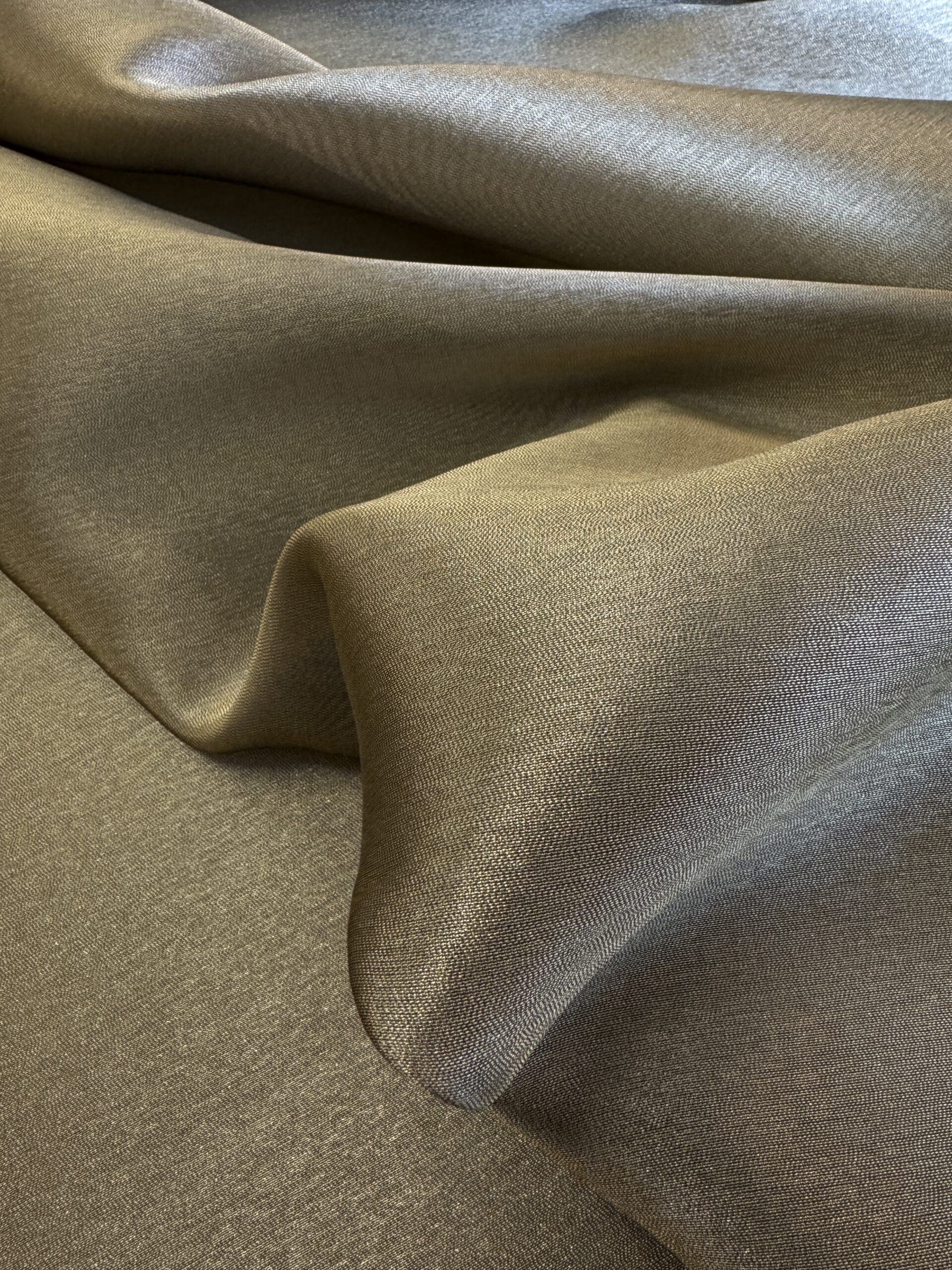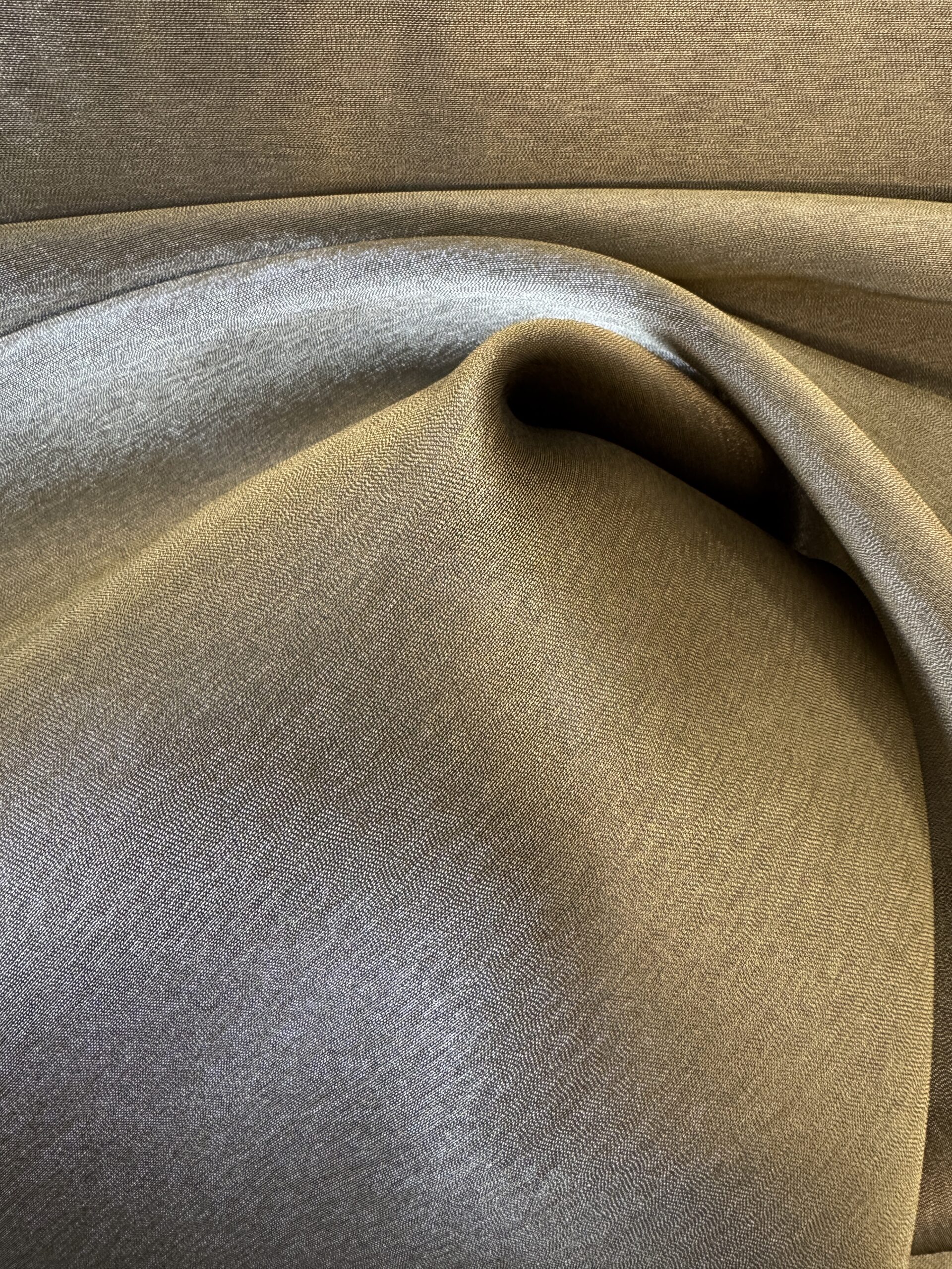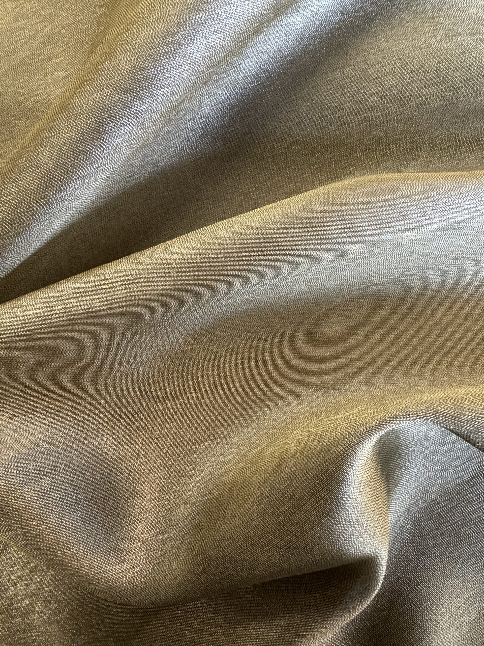 A medium-weight polyester–silk blend with a smooth finish, gentle sheen, and elegant drape. Luxurious yet durable — ideal for refined garments and accessories.