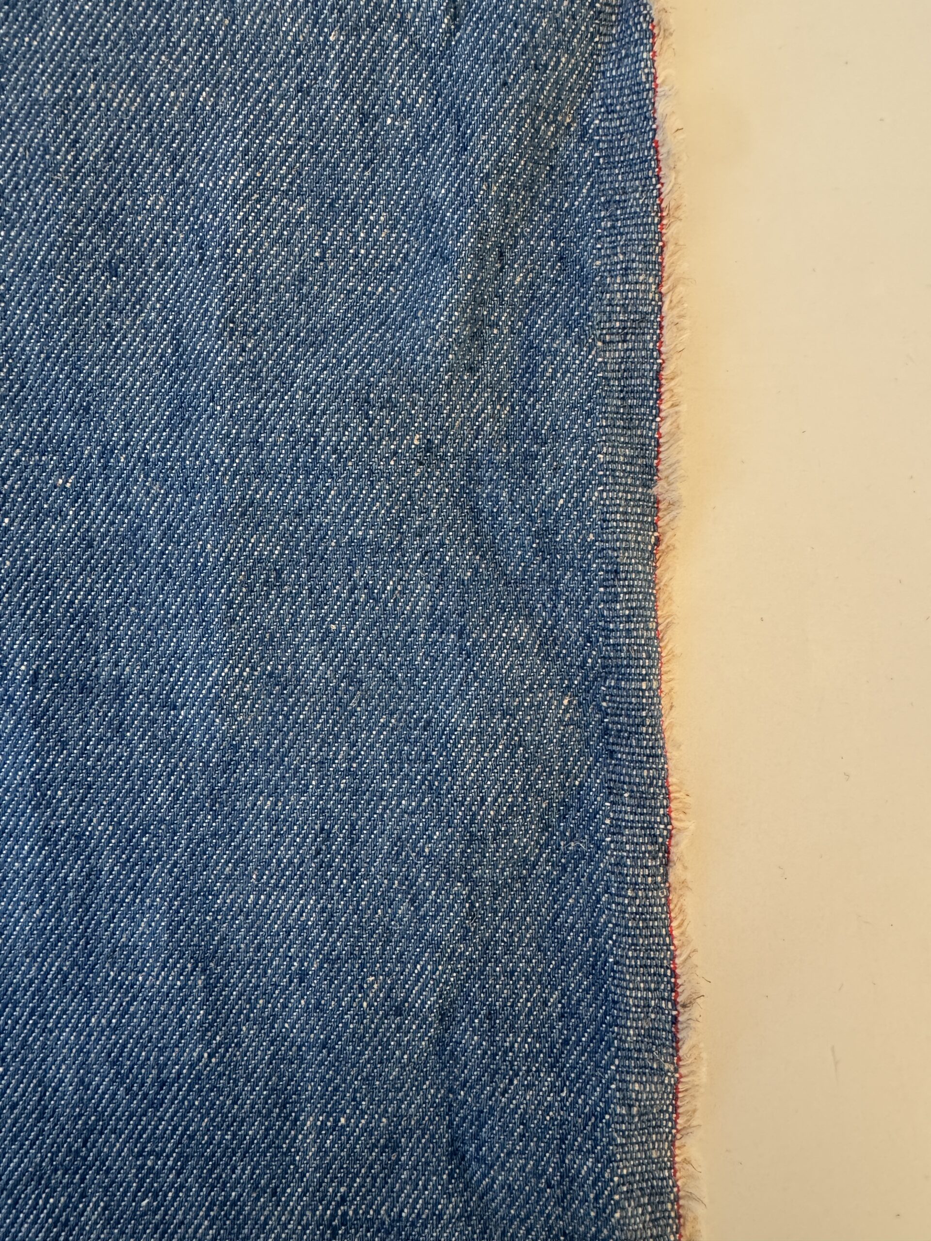 A beautiful blue cotton-hemp blend denim with a dry, natural texture. Ideal for jeans, jackets, dresses, shorts, and more.