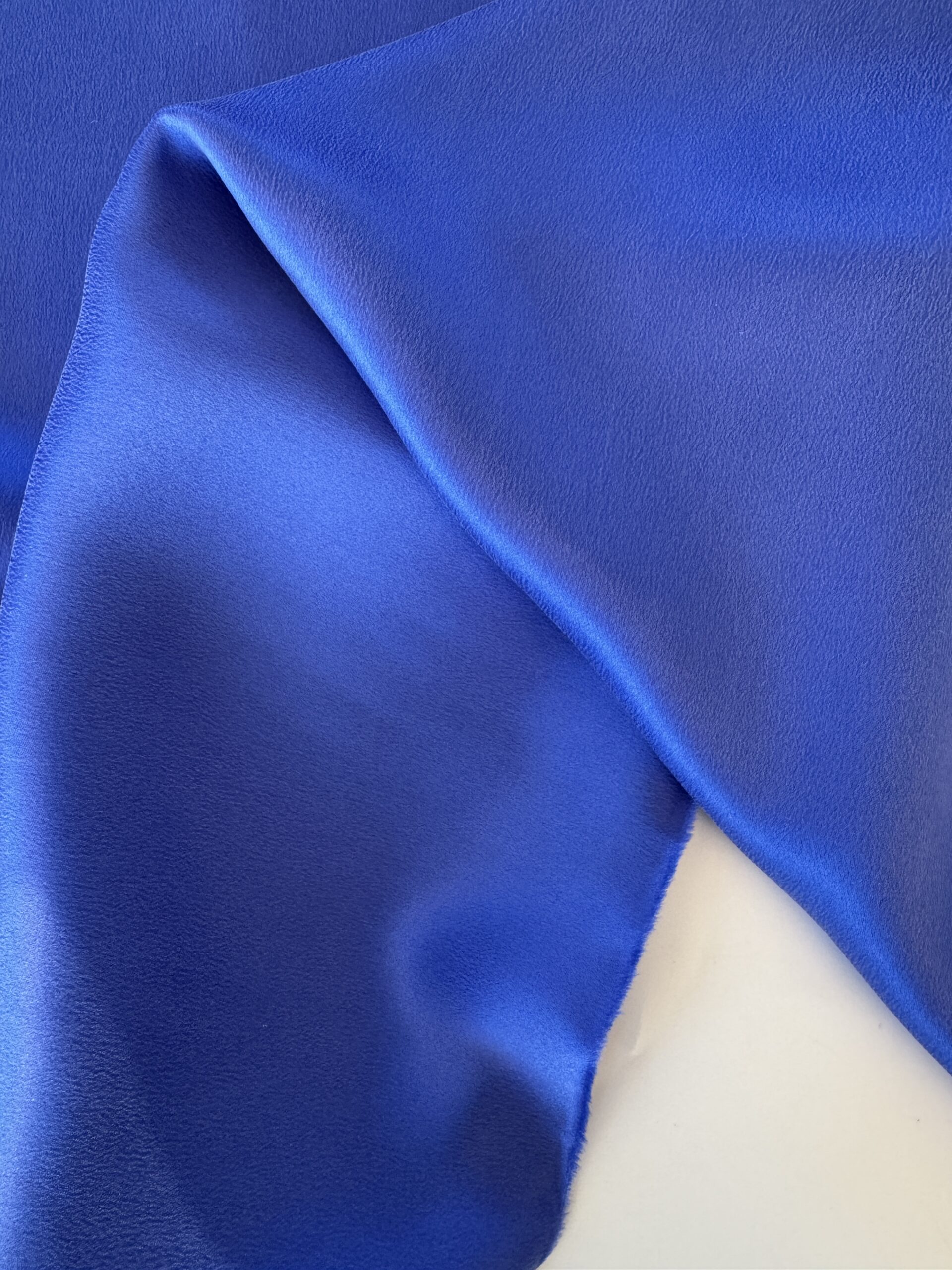 This sand-washed black silk satin has a soft, velvety feel and a subtle matte shine. The sand-washing process provides a smooth drape and a suede-like texture, making it perfect for slip dresses, blouses, eveningwear, and everyday outfits.