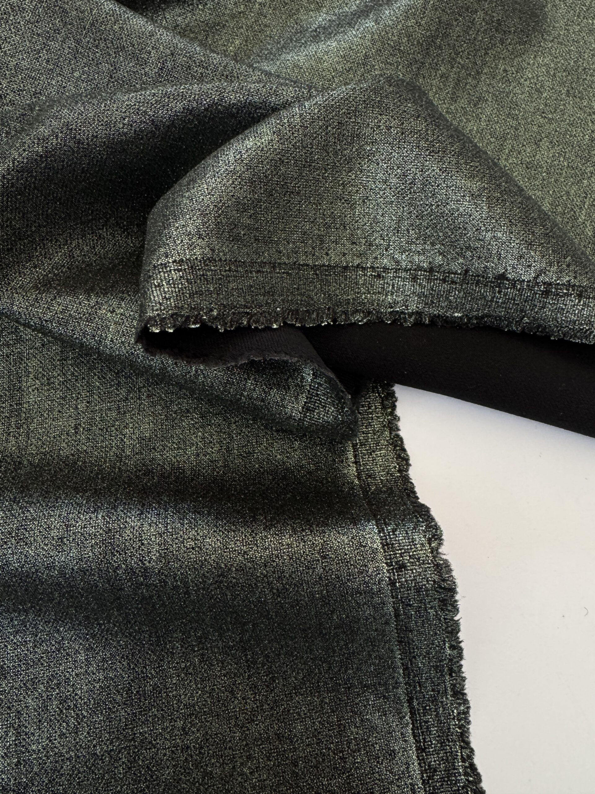 A smooth metallic fabric with a soft sheen that shifts beautifully in the light. Elegant and fluid with gentle structure—perfect for eveningwear, tailored pieces, and statement garments.