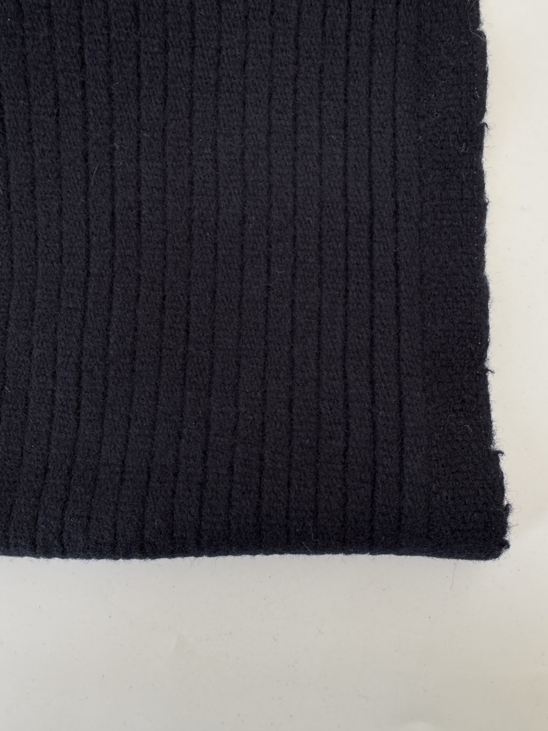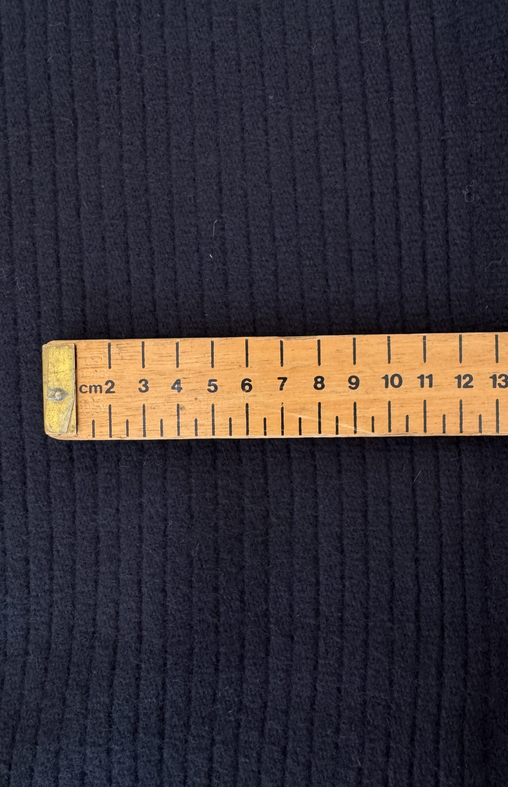 A medium-heavy deep navy wool with a soft ridged texture and a warm, soft feel. Ideal for coats, jackets, skirts, and winter tailoring.