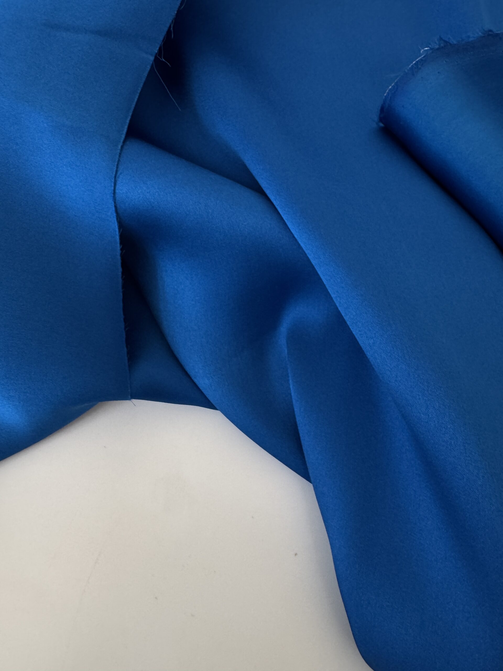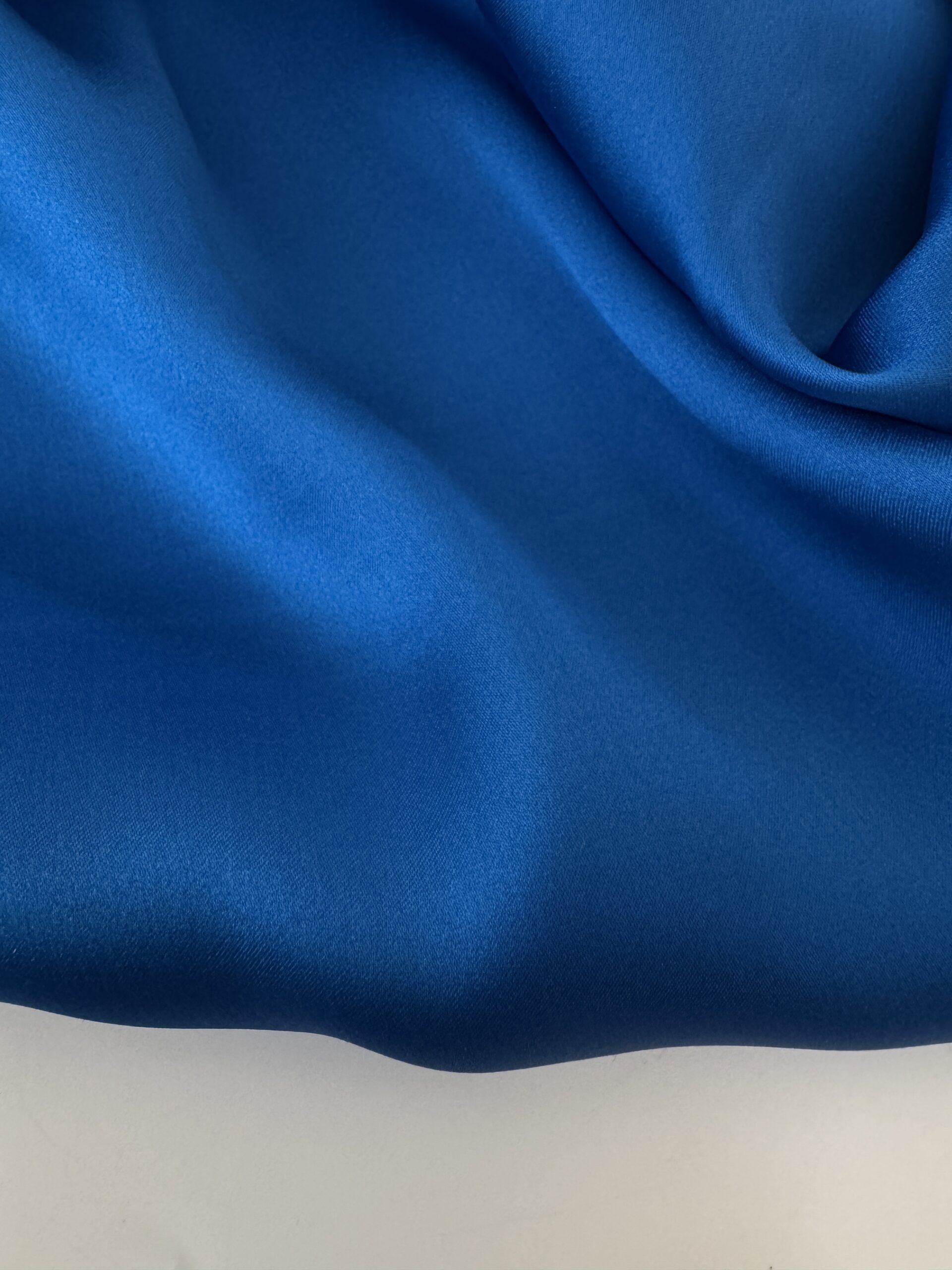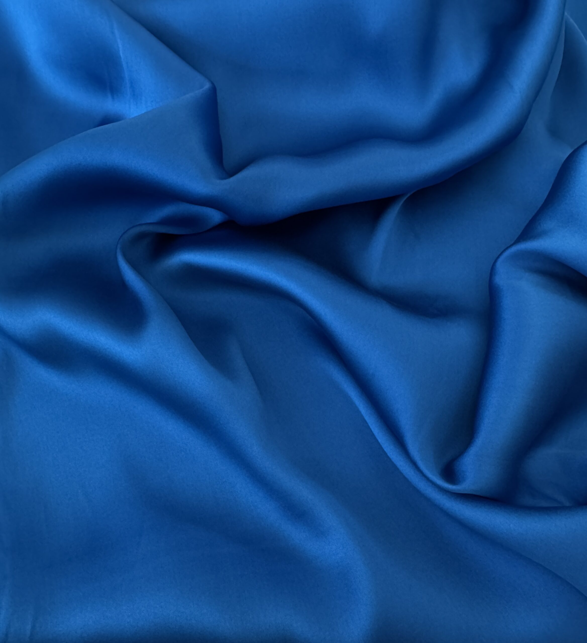 Medium weight, closely woven silk with satin finish on both sides. In a stunning blue colour.