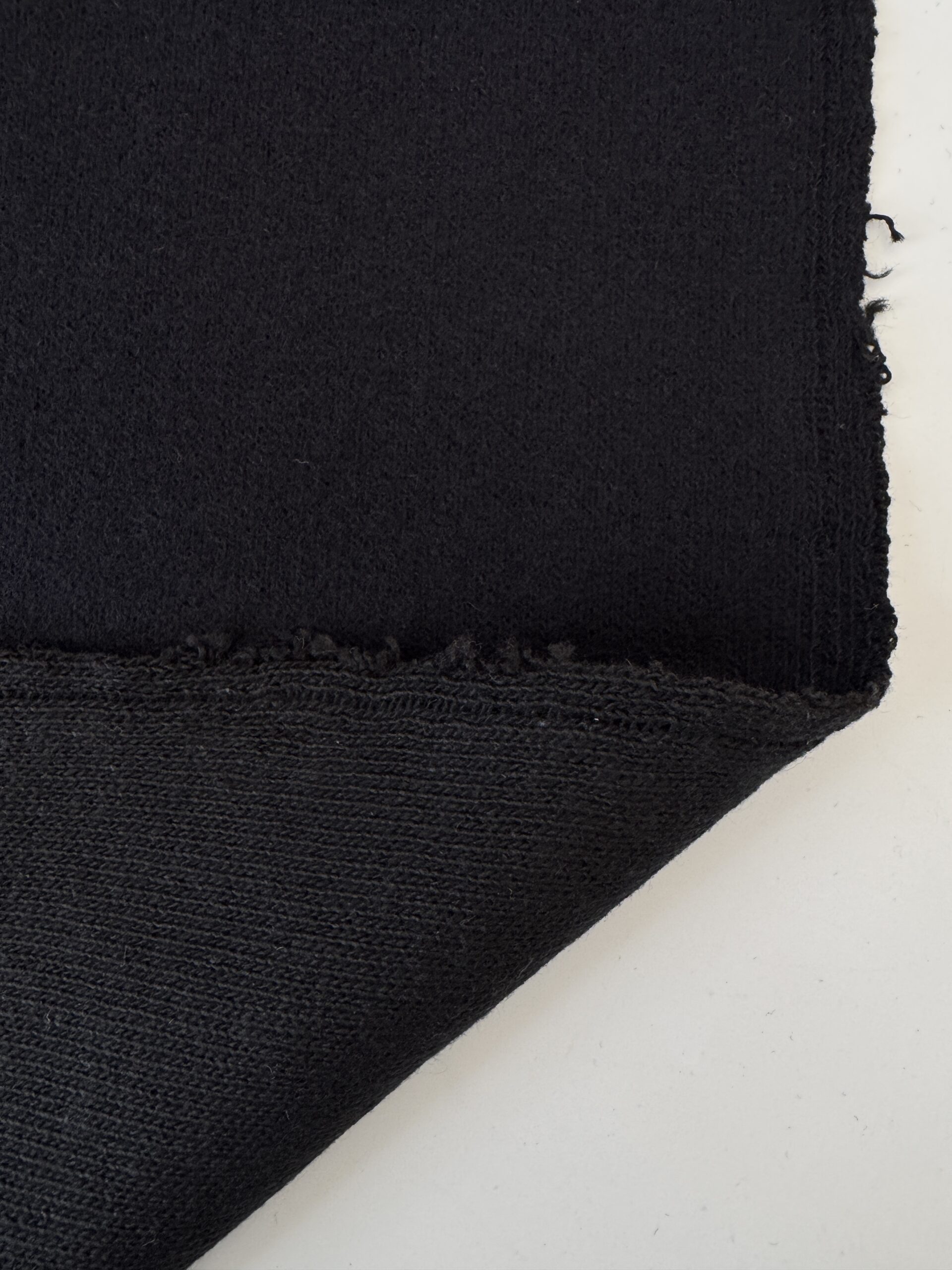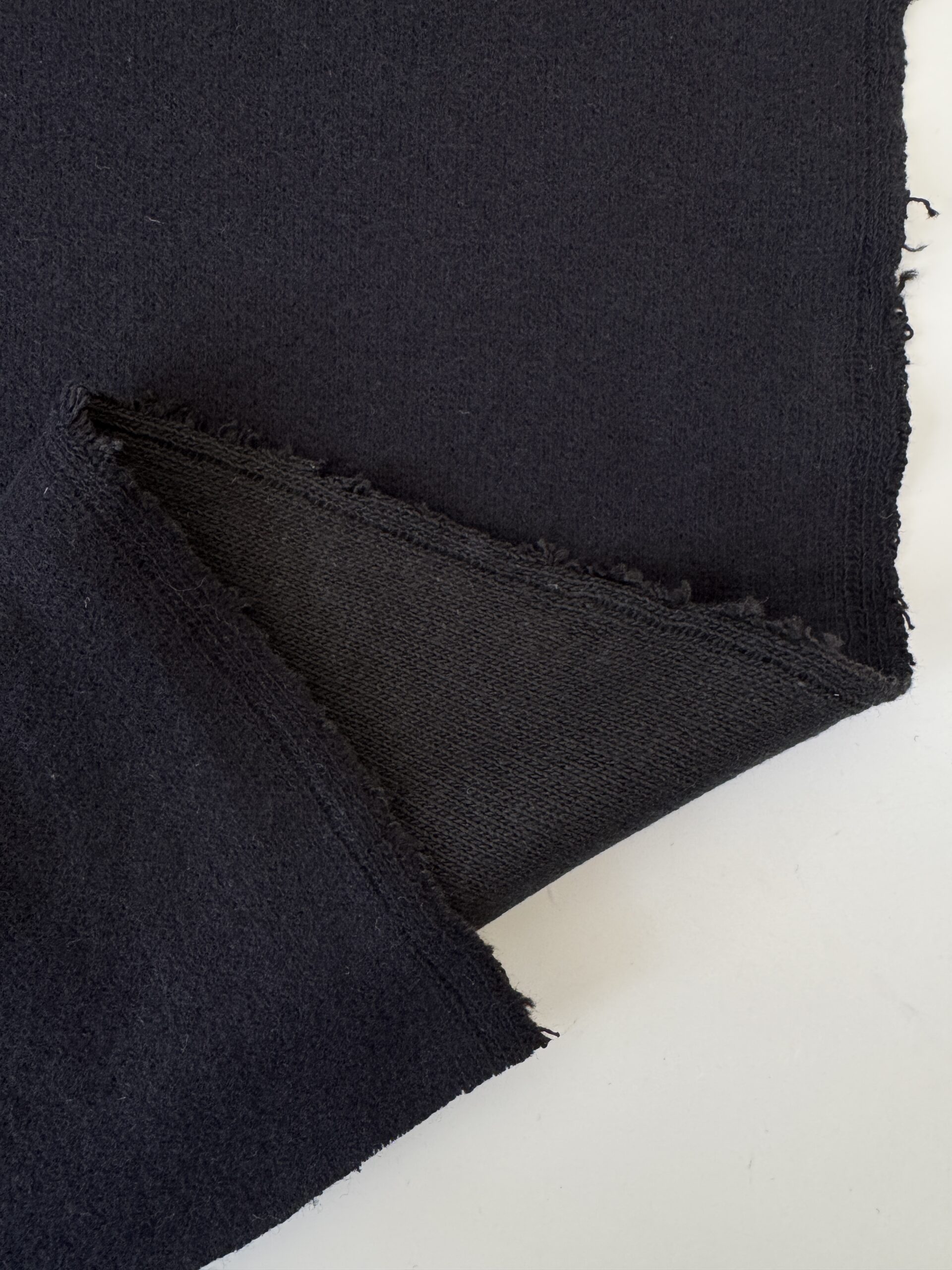 A beautiful medium-heavyweight reversible navy wool blend jersey with a brushed, ultra-soft feel and fluid drape. Ideal for dresses, jumpers, t-shirts, loungewear, accessories, and more.