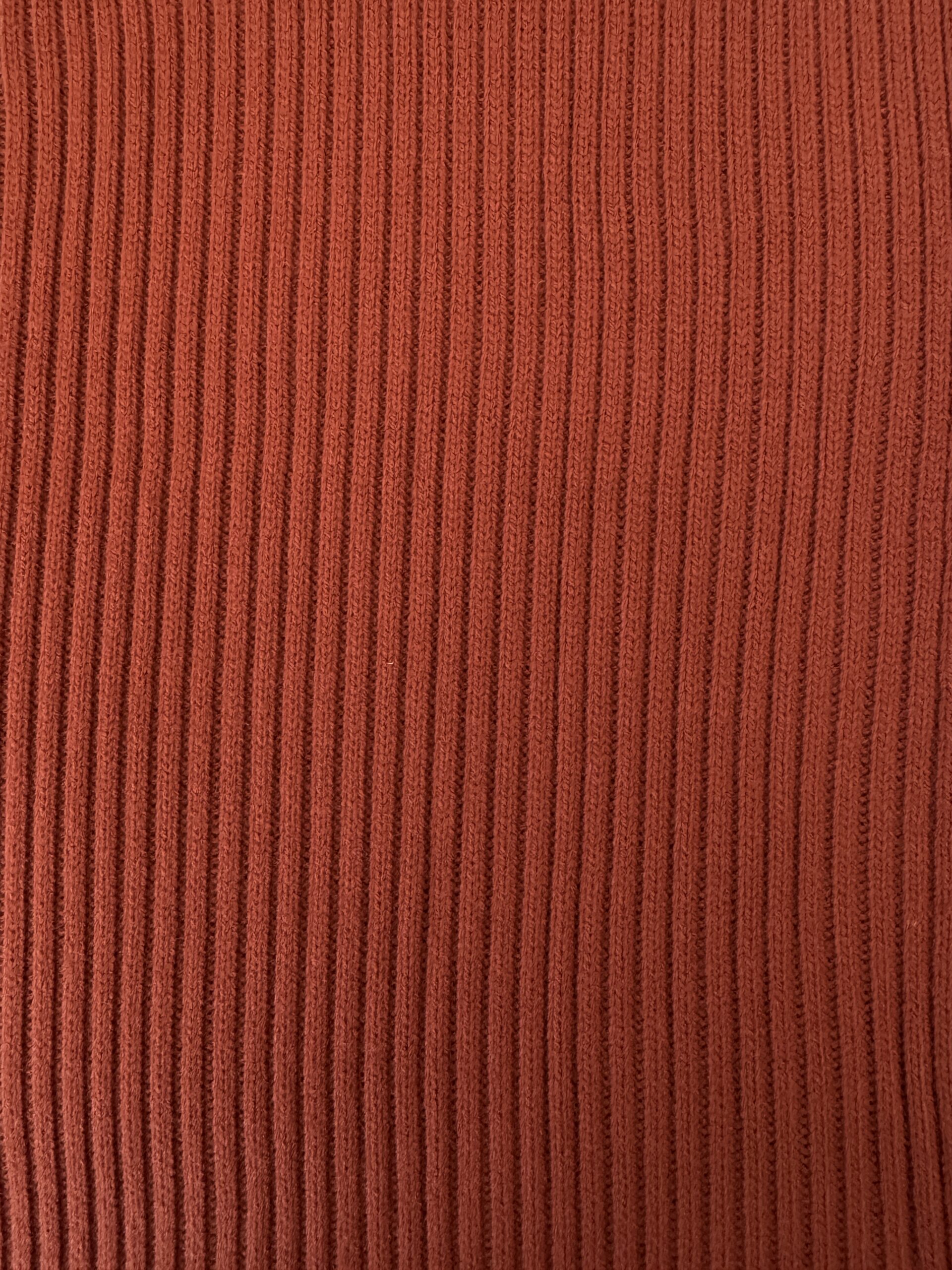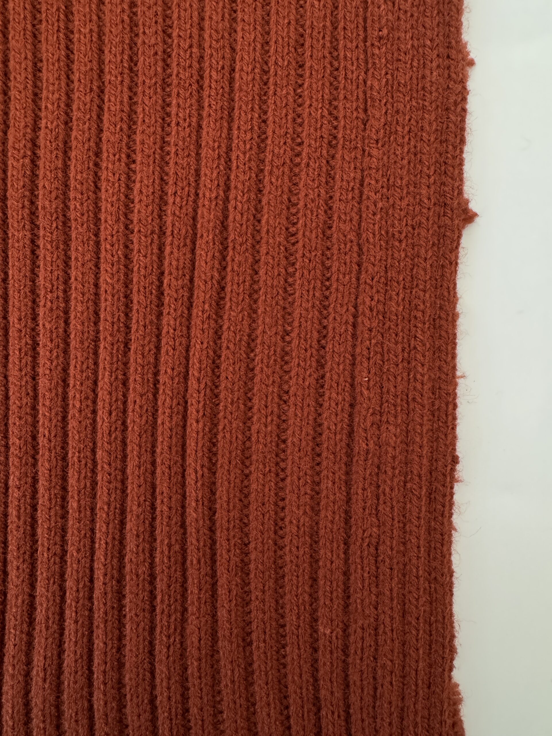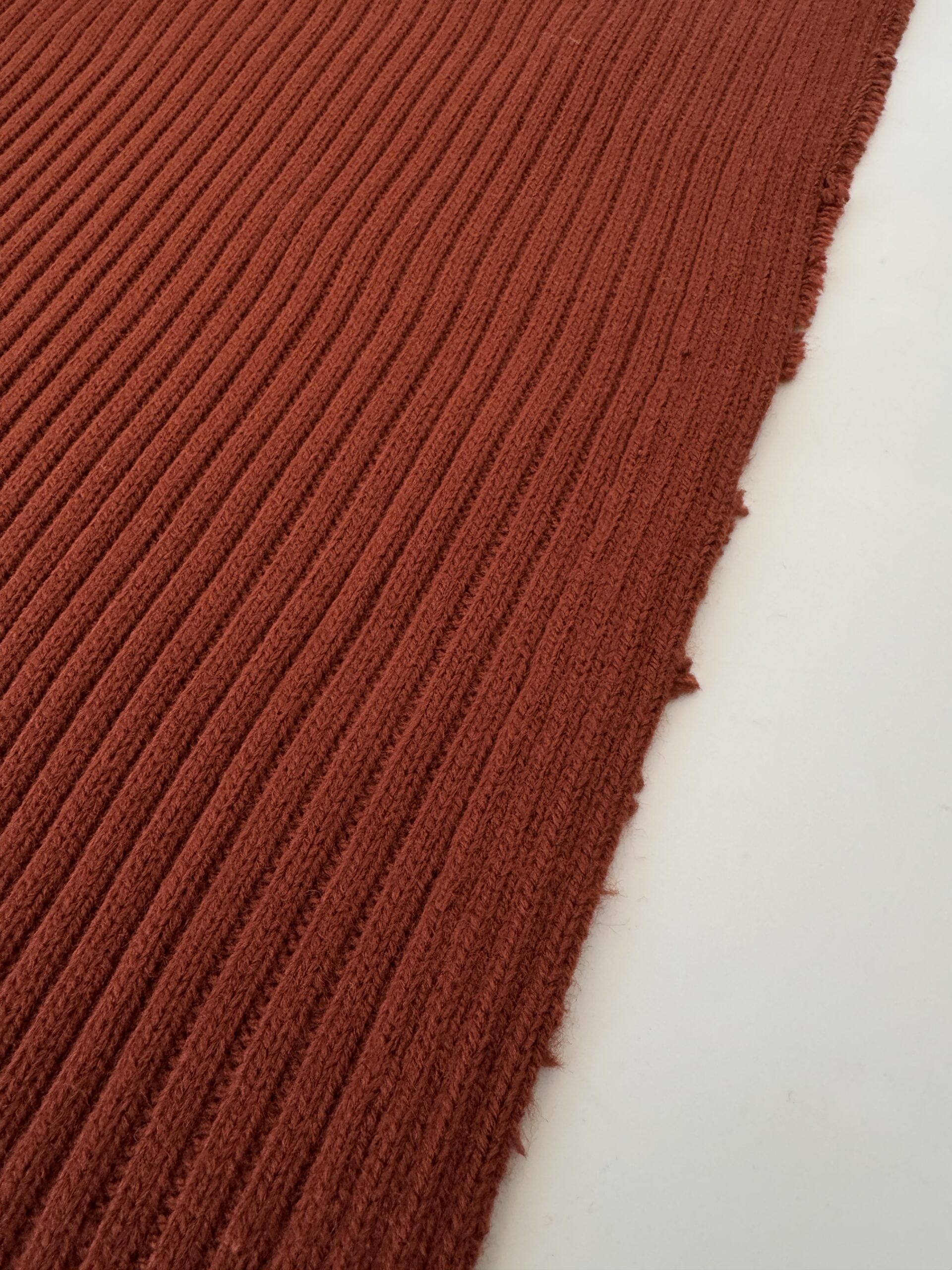 A heavy-weight 2 x 2 knitted rib with a soft texture in a lovely rust colour. Ideal for autumn-winter coats, jumpers, dresses, skirts, accessories, and more!